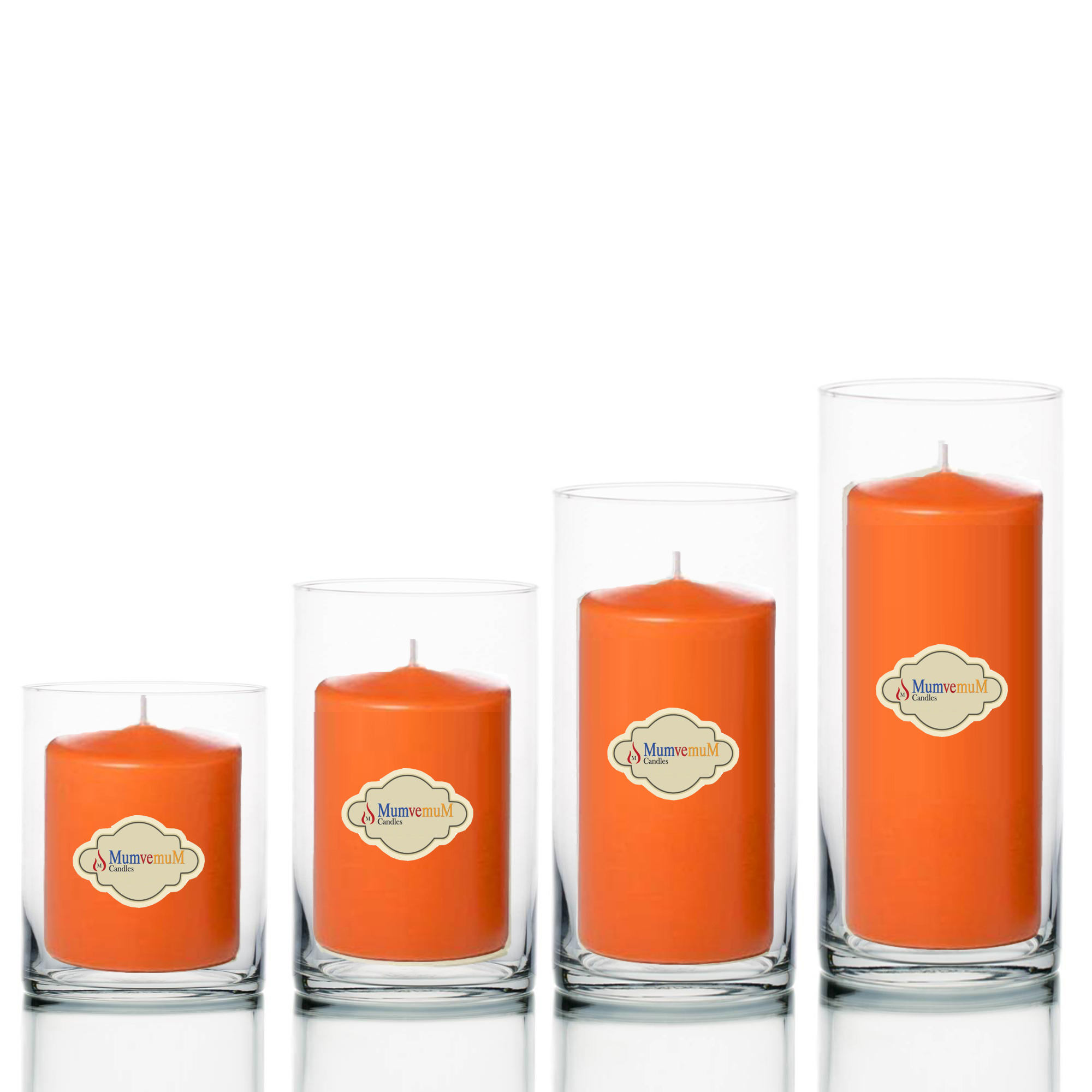4 Lü Set Cam Vazo İçi Turuncu Set Mum