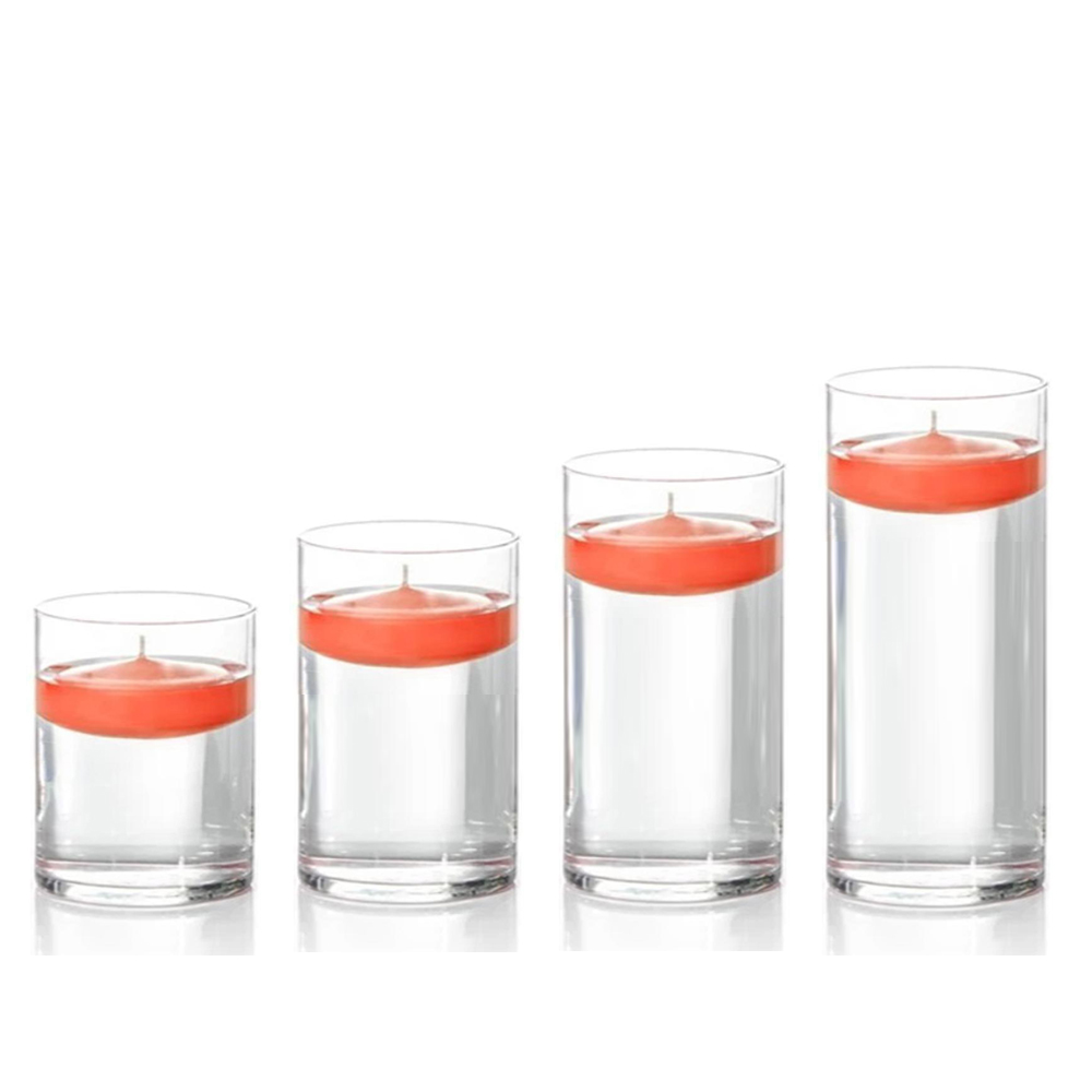 4 Lü Vazo + 12 Adet Çap 5 cm Turuncu Yüzen Mum