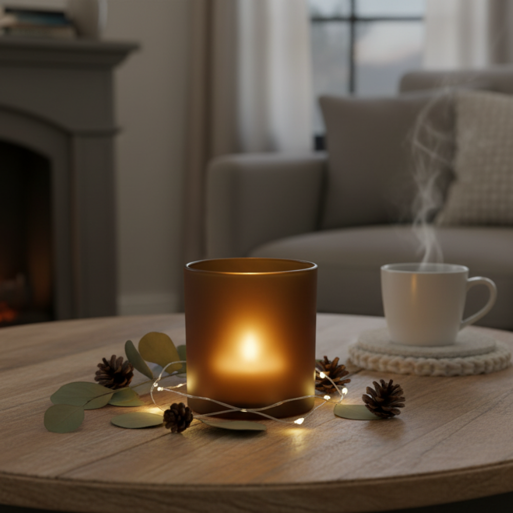 Buzlu Kahve Rengi Cam Mumluk , dekorasyonda hem zarafet hem sıcak tonlardan yana olanlar için ideal bir tercihtir. Buzlu yüzeyi ışığı yumuşatarak hoş bir parıltı verir, kahverengi tonu ise mekâna doğal ve sofistike bir hava kazandırır.
