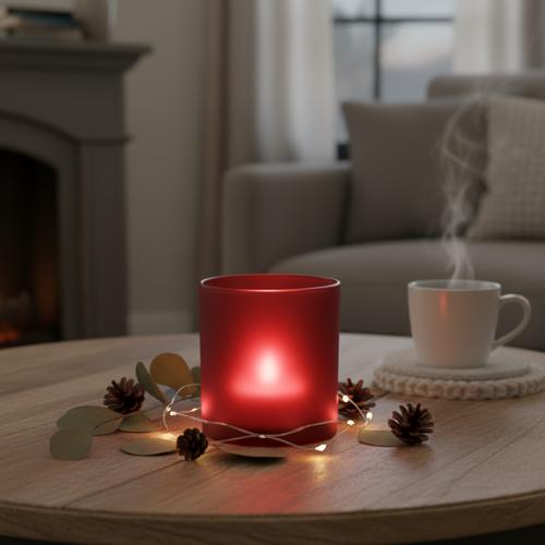 Buzlu Kırmızı Cam Mumluk , dekorasyonda şıklığın ve sıcaklığın bir araya geldiği bir seçenektir. Buzlu cam yüzey, ışığı nazikçe dağıtarak mekâna yumuşak ve davetkâr bir hava kazandırır; kırmızı tonu ise özellikle akşam dekorasyonlarında öne çıkar.