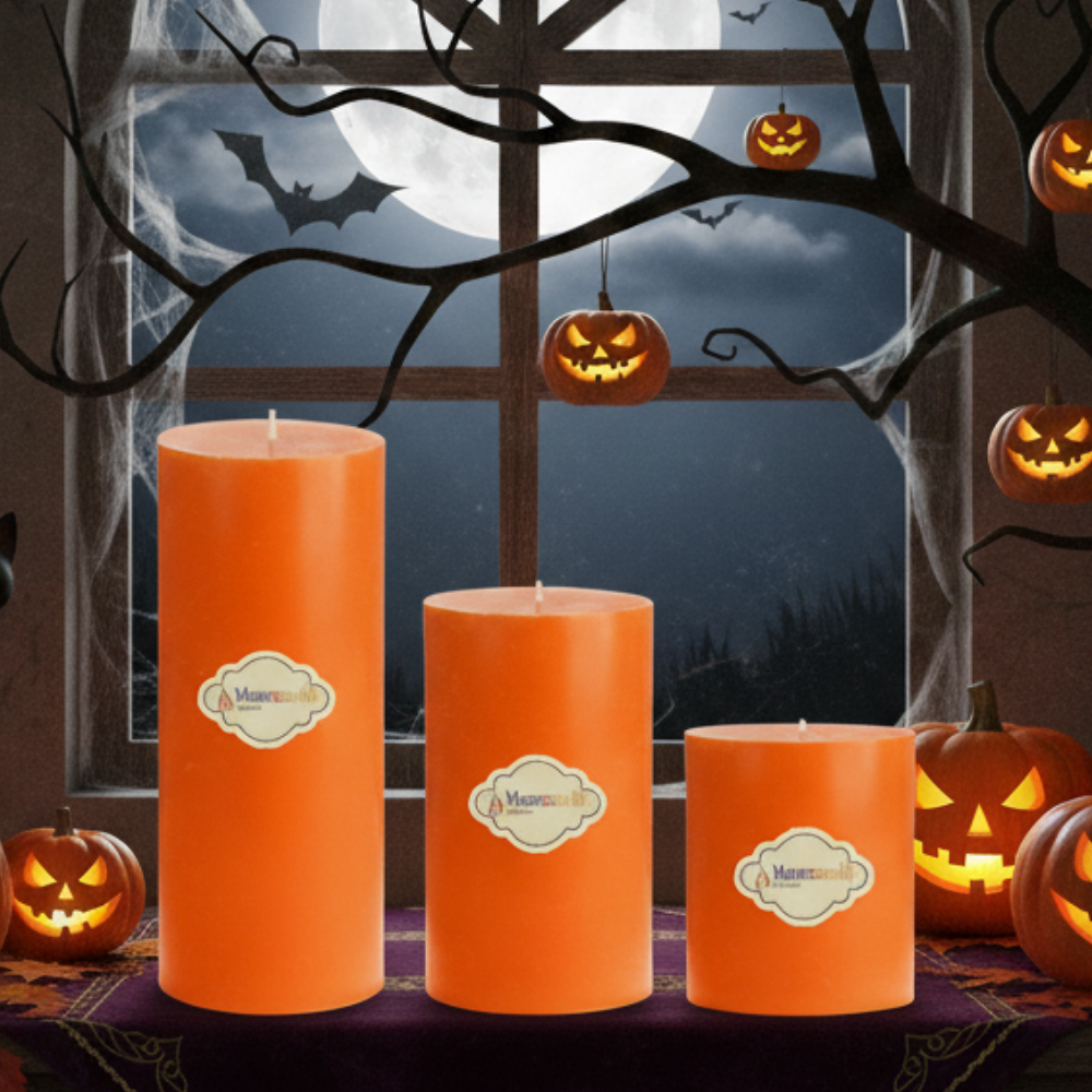 3 Lü Halloween Turuncu Set Mum Çap :7 cm