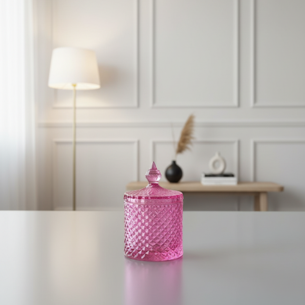 Pembe Kristal Cam Kapaklı Şekerlik