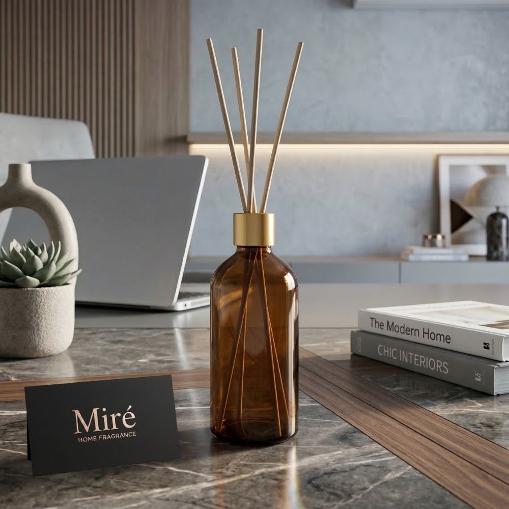 Bambu Çubuklu Oda Kokusu - Amber Şişe - Gold Kapak