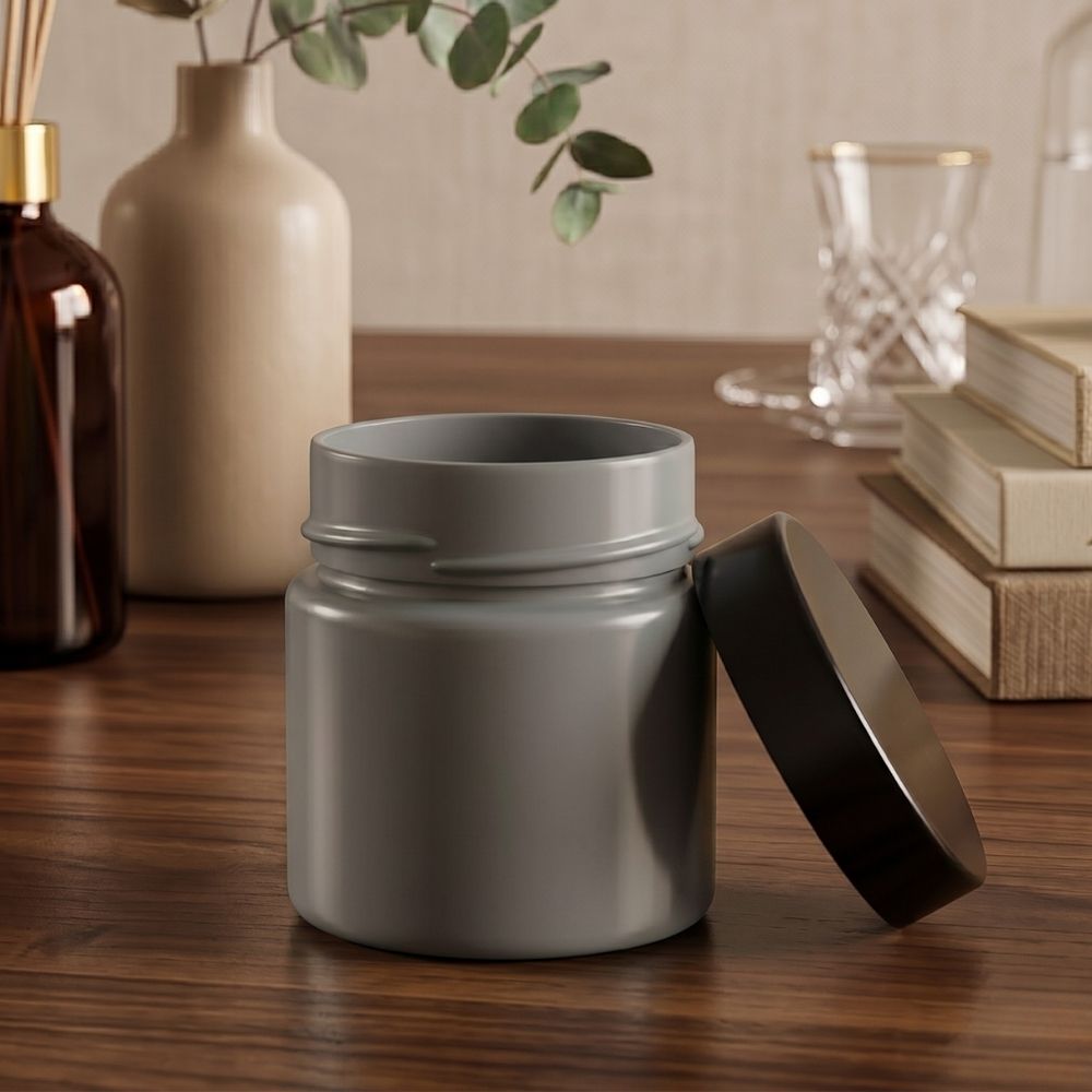 Dış Boyama Gri Kavanoz Kapaklı- Mum Dolumuna Uygun